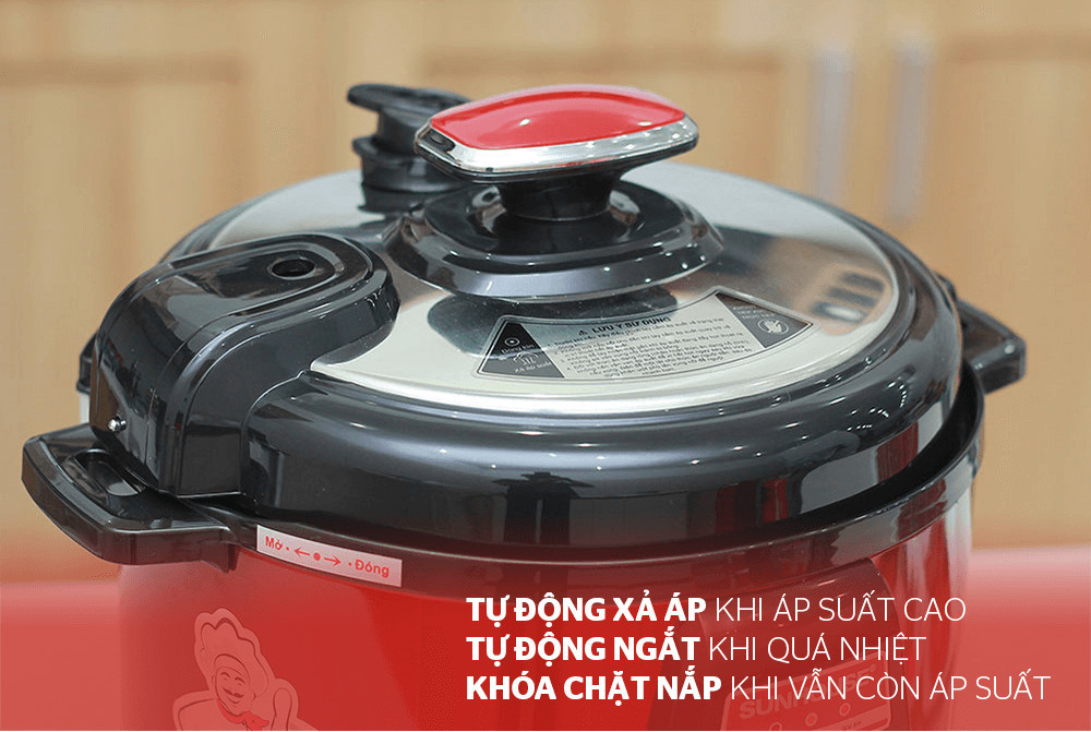 • Hoạt động với công suất 900W, nồi áp suất sẽ giúp bạn nấu chín nhanh thức ăn, mà vẫn đảm bảo lưu giữ hương vị, thành phần chất dinh dưỡng có trong thực phẩm.
