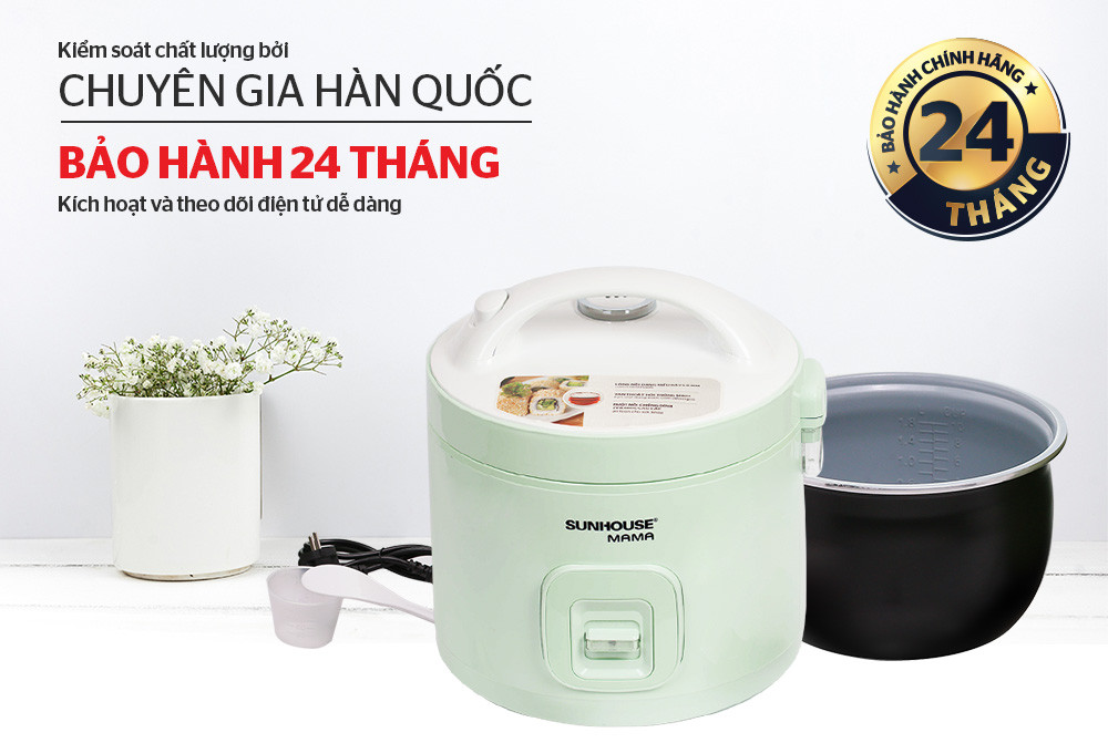 Sản phẩm thuộc thương hiệu Mama – dòng sản phẩm cao cấp của Tập đoàn SUNHOUSE và được áp dụng bảo hành chính hãng lên đến 24 tháng. Ngoài ra, bạn có thể dễ dàng kích hoạt bảo hành ngay từ khi mới mua về bằng cách nhắn tin điện thoại và theo dõi chế độ bảo hành dễ dàng.
