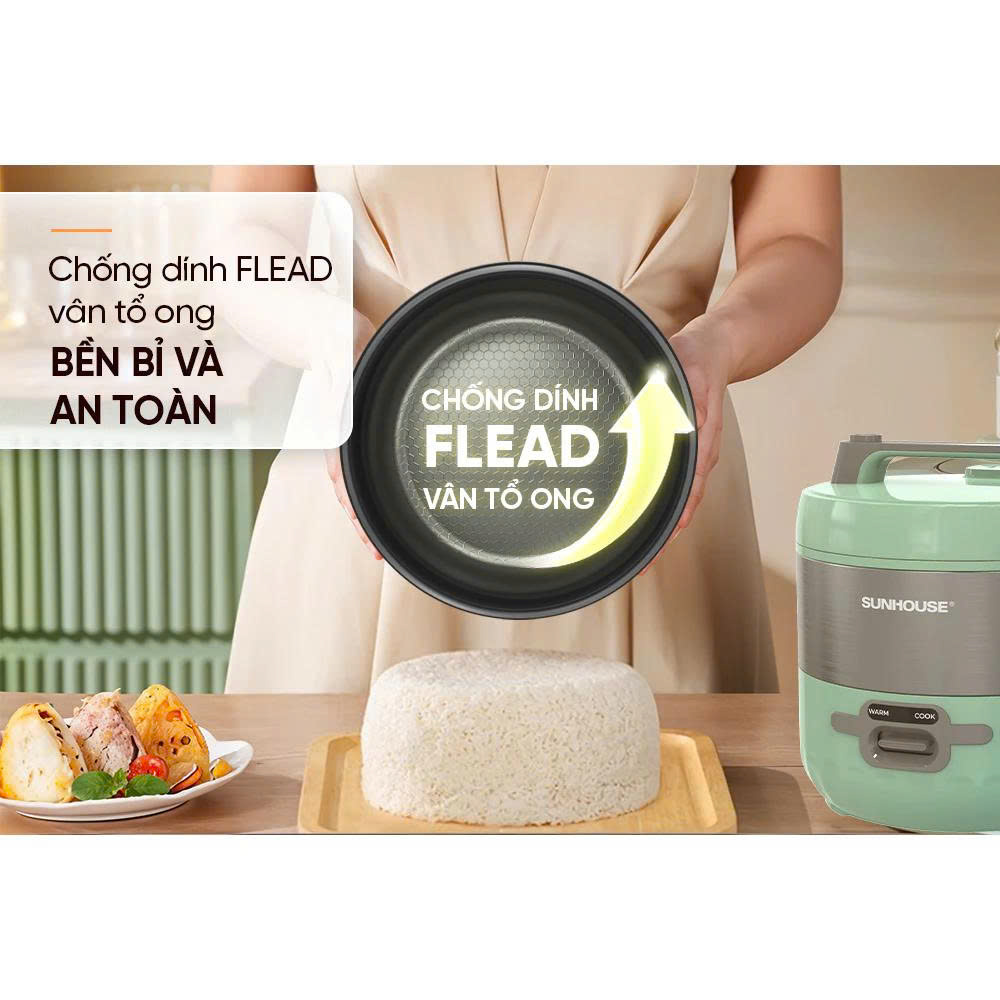 Nồi cơm điện 1.2L SUNHOUSE SHD8221 nổi bật nhờ thiết kế nhỏ gọn, dung tích 1.2L phù hợp cho gia đình nhỏ hay người độc thân cùng các tính năng hỗ trợ nấu cơm ngon như lòng nồi 3 lớp giữ nhiệt tốt, chống dính FLEAD an toàn, và xửng hấp tiện lợi. Đây chính là lựa chọn lý tưởng cho bữa cơm dẻo thơm, tròn vị mỗi ngày.