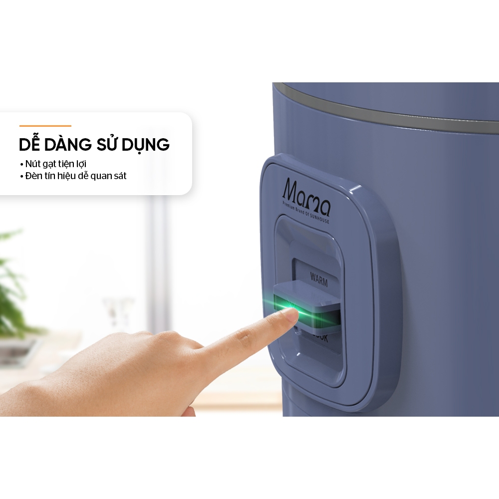 Nồi cơm điện 1.8L SUNHOUSE MAMA SHD8666V nổi bật với màu tím trẻ trung, thời thượng, khơi gợi cảm hứng nấu nướng cho người nội trợ và tô điểm thêm màu sắc tươi tắn cho gian bếp.
