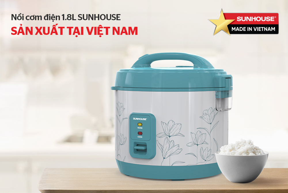 Sản phẩm được sản xuất tại Việt Nam, dưới sự nghiên cứu và giám sát chất lượng bởi chuyên gia Hàn Quốc. Nếu bạn là một người yêu thích phong cách trẻ trung, độc đáo thì chiếc nồi cơm điện 1.8L SUNHOUSE SHD8605 chính là lựa chọn vô cùng hoàn hảo.