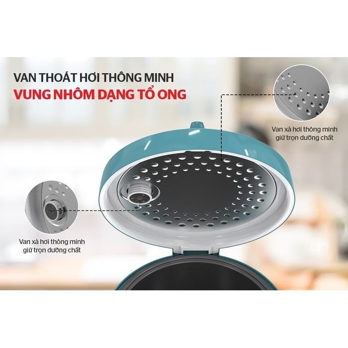 Sản phẩm có van thoát hơi thông minh, tận dụng tối đa hơi nước để làm chín mềm cơm và bảo toàn được tối đa dưỡng chất. Ngoài ra, thiết kế nắp trong dạng tổ ong ngăn hơi nước ngưng đọng trên nắp nhỏ xuống làm cơm nhão và dễ thiu, giúp cơm ráo mặt, thơm ngon hơn.