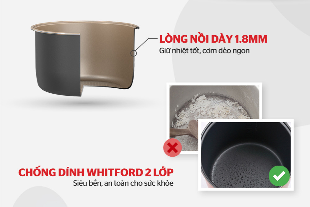 Chống dính 2 lớp Whitford (USA) tăng gấp đôi độ bền, an toàn sức khỏe