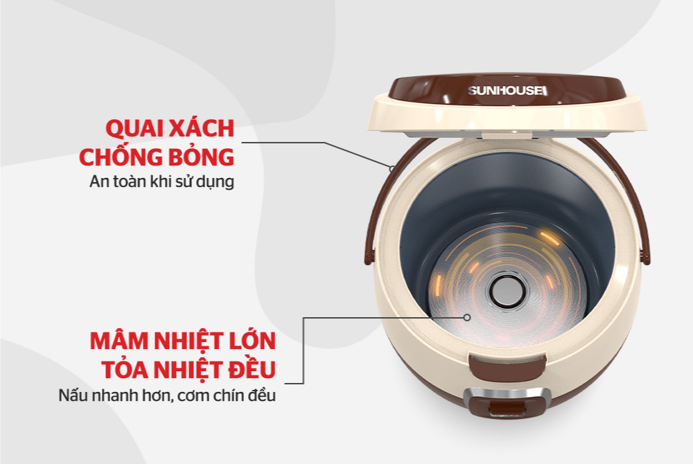 Mân nhiệt lớn Tỏa nhiệt nhanh, cơm chín đều