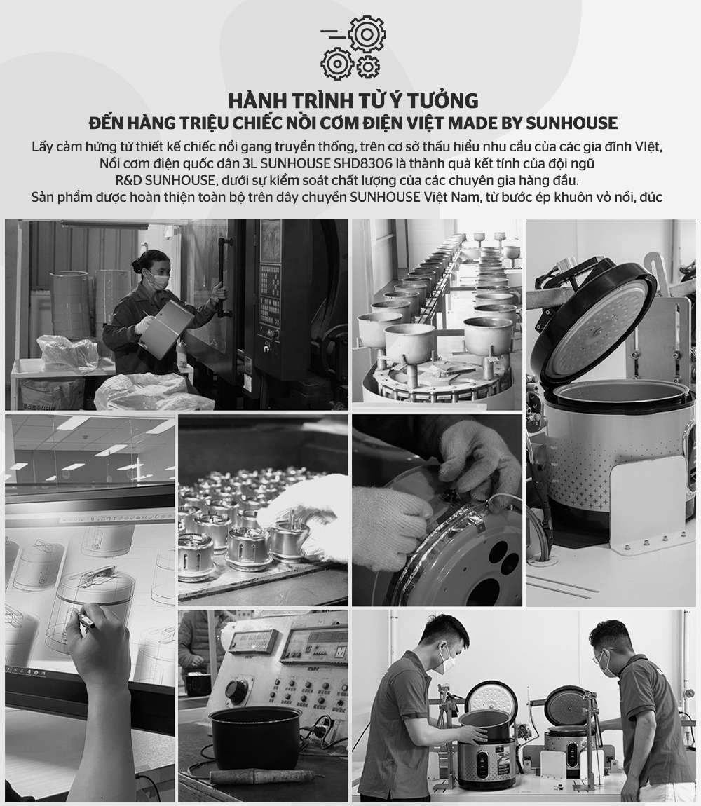 Lòng nồi dày 1.7mm, giữ ấm tốt, cơm dẻo thơm hơn