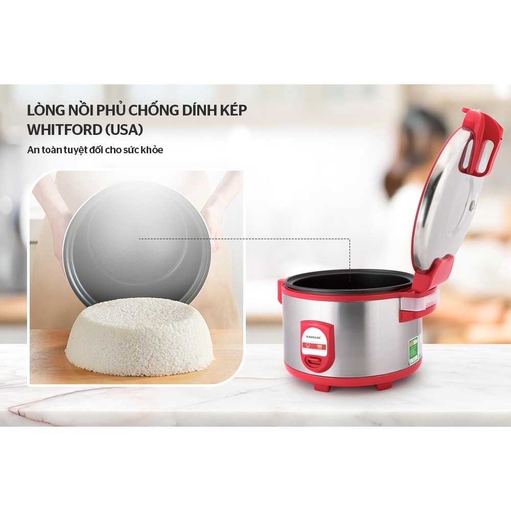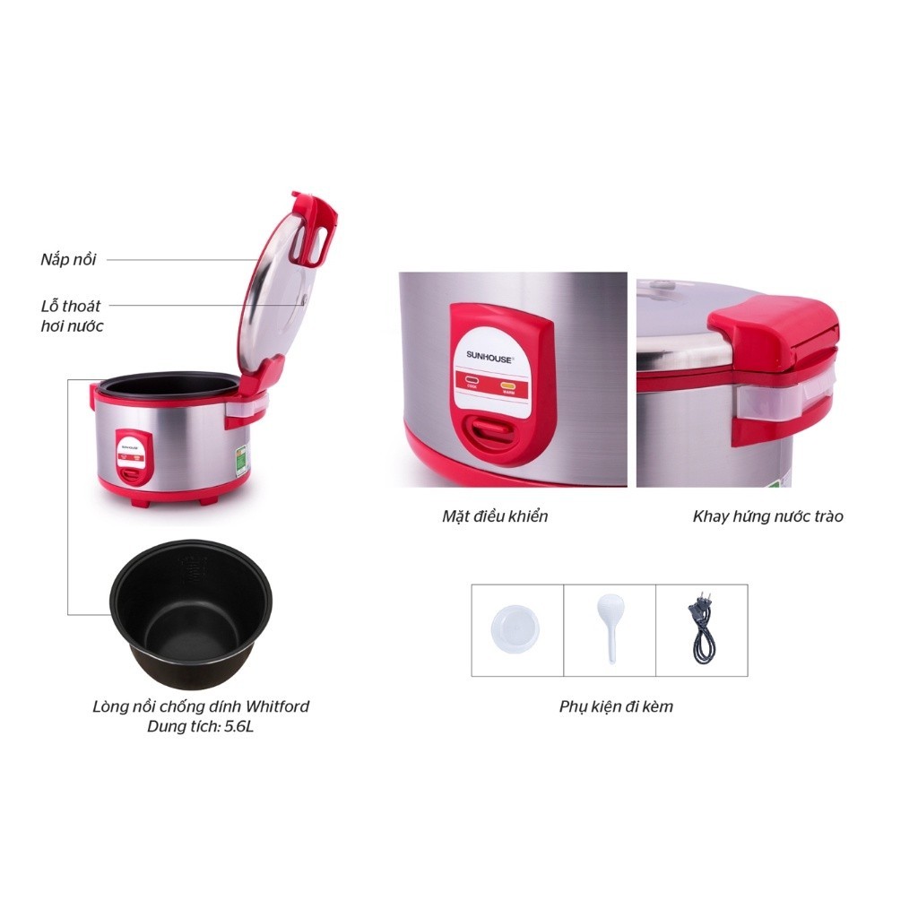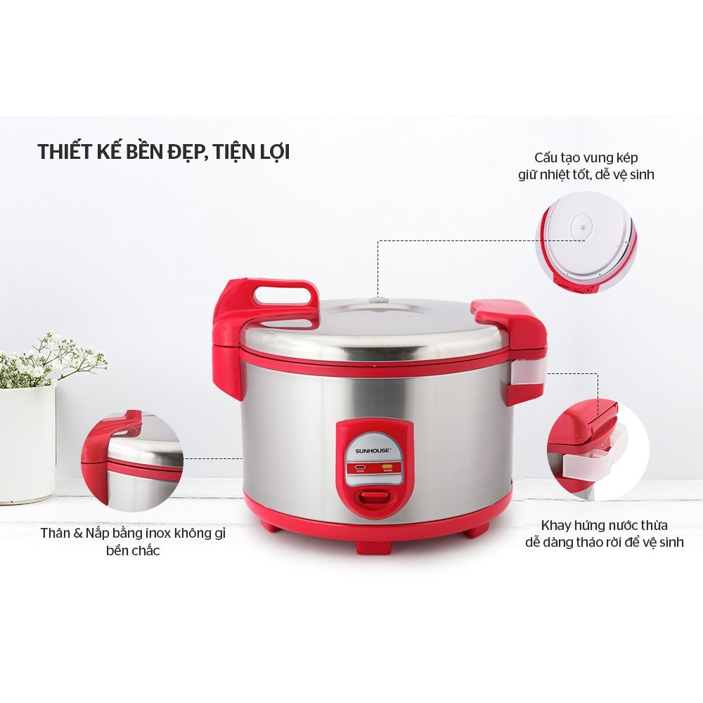 Nồi cơm điện 5.6L SUNHOUSE SH866 là lựa chọn hoàn hảo cho những nhà hàng, quán ăn hay những dịp lễ lạt tập trung nhiều người. Với dung tích lớn và chất liệu cấu tạo bền chắc an toàn, khả năng nấu nhanh lại tiết kiệm điện, nồi cơm điện SH866 có thể làm hài lòng bất cứ người dùng khó tính nào.