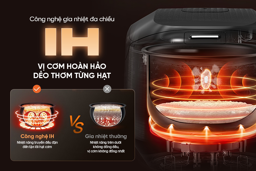 Công nghệ IH gia nhiệt đa chiều, vị cơm hoàn hảo, dẻo thơm từng hạt