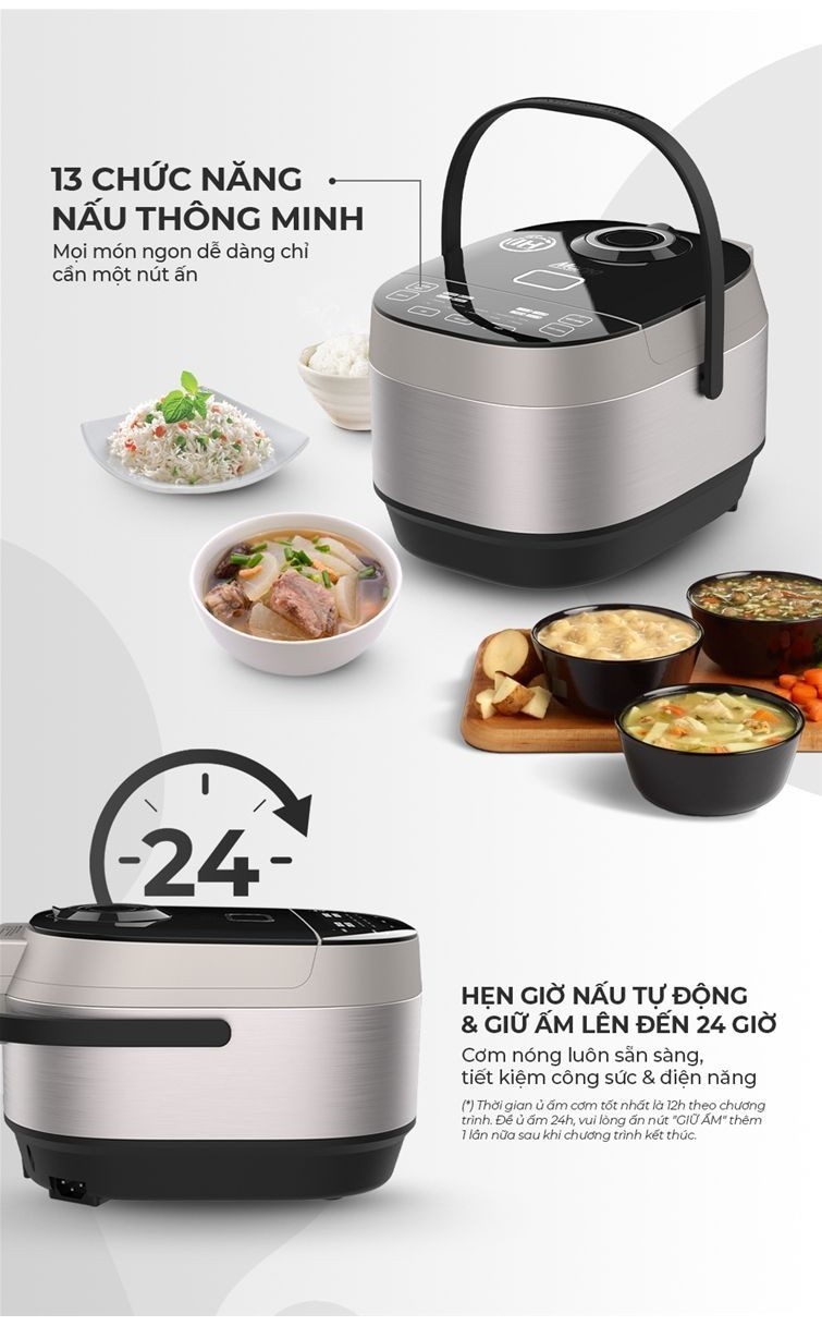 - 13 chế độ nấu cài đặt sẵn, thông minh, tiết kiệm thời gian