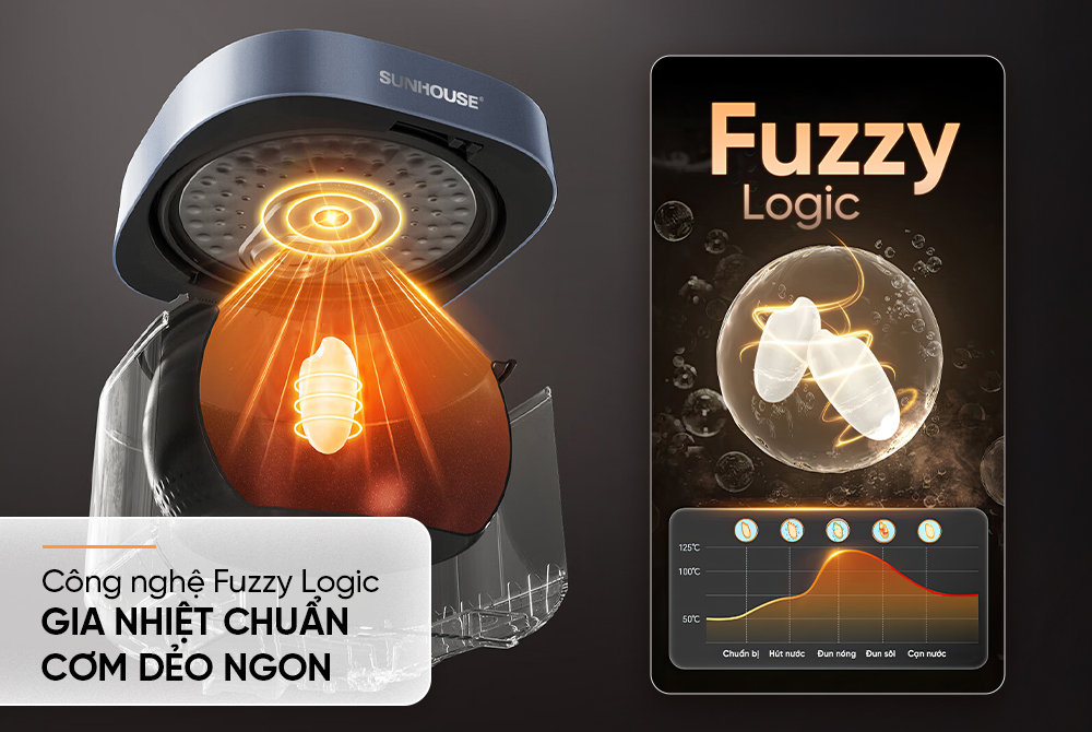Nồi cơm điện tử SUNHOUSE SHD8916 được trang bị công nghệ Fuzzy Logic với khả năng tự động điều chỉnh nhiệt độ cho phù hợp với lượng gạo, nước trong nồi, giúp hạt cơm dẻo thơm, tơi xốp hơn. Đồng thời, trong quá trình giữ ấm, công nghệ Fuzzy Logic cũng sẽ kiểm soát nhiệt độ để hạn chế tình trạng đọng nước, giữ cơm luôn nóng hổi.