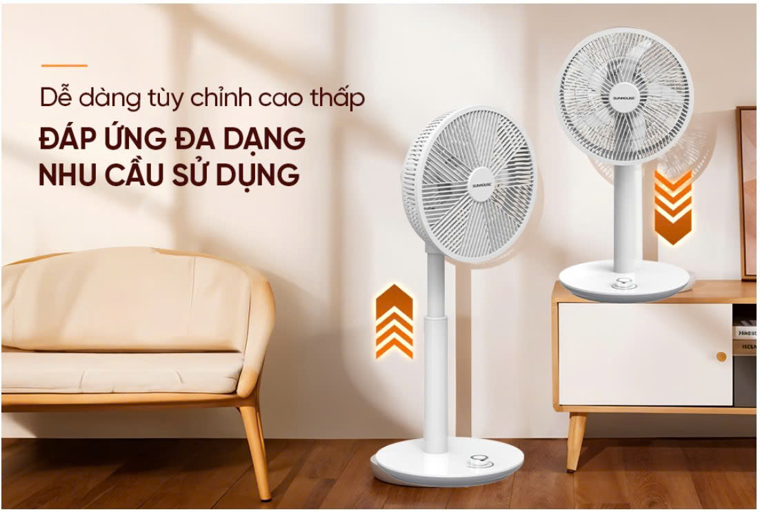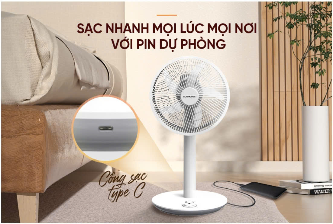 Quạt sạc SUNHOUSE SHD7221 sở hữu vẻ ngoài nhỏ nhắn, thời trang với gam màu trắng tối giản, hòa hợp với mọi không gian từ phòng khách hiện đại đến phòng ngủ nhỏ gọn. Sản phẩm không chỉ là thiết bị làm mát, mà còn là điểm nhấn thẩm mỹ cho ngôi nhà bạn.