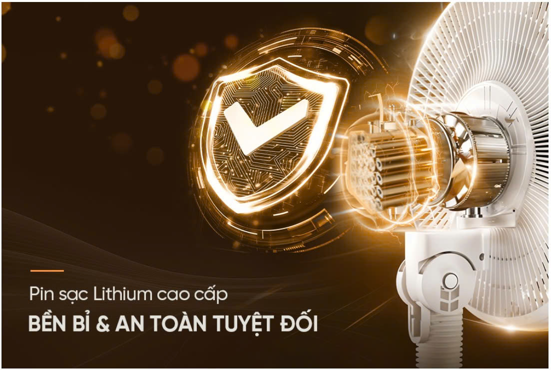 Quạt sạc SUNHOUSE SHD7221 sử dụng pin sạc Lithium chất lượng cao, bền bỉ nên bạn có thể hoàn toàn yên tâm sử dụng lâu dài.