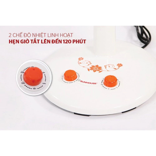 Ngoài ra, quạt sưởi halogen SUNHOUSE SHD7005 còn có chức năng hẹn giờ lên đến 120 phút, giúp bạn kiểm soát hoạt động của thiết bị, không lo quên tắt quạt khi ra khỏi phòng gây lãng phí điện năng.