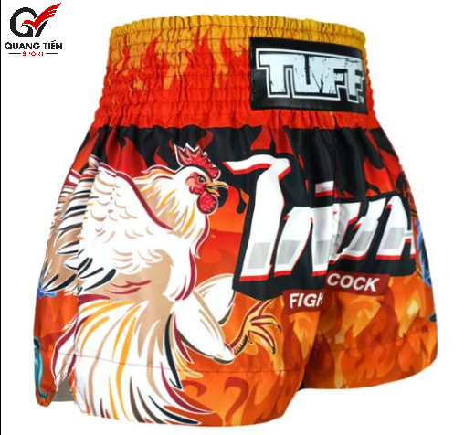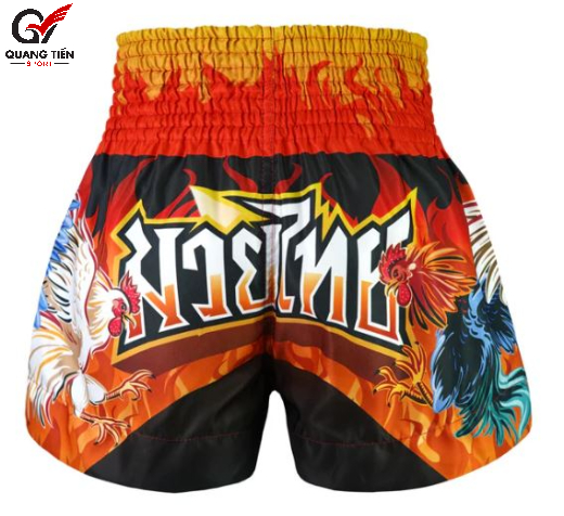 Những chiếc quần đùi cắt xẻ cổ điển được lấy cảm hứng từ thời kỳ hoàng kim của Muay Thái những năm thập niên 80. Với nét chấm phá của hoa văn kiểu Thái và hình con gà được thêu rất tinh xảo tỉ mỉ đến từng chi tiết