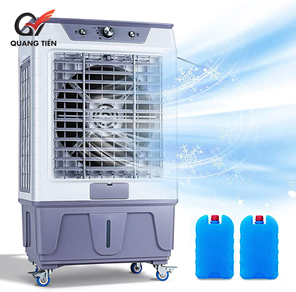 - Nguyên lý máy chạy nhờ vào hơi nước và công suất động cơ 150W chạy của cánh quạt. Dung tích tối đa 50l, người dùng bơm đầy nước trong khoang chứa và bấm sử dụng chế độ làm mát. Hỗ trợ nhanh chóng làm mát không gian từ 30-40m3