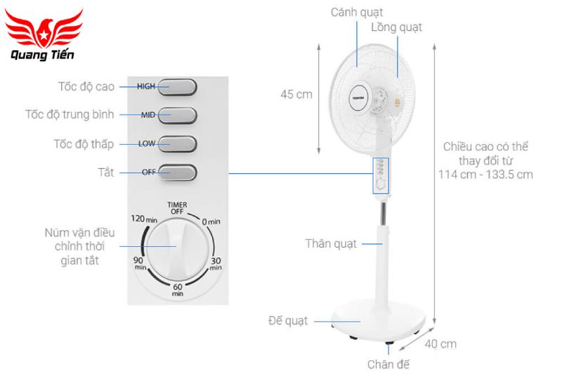 Cấu tạo của quạt đứng Toshiba F-LSA10VN