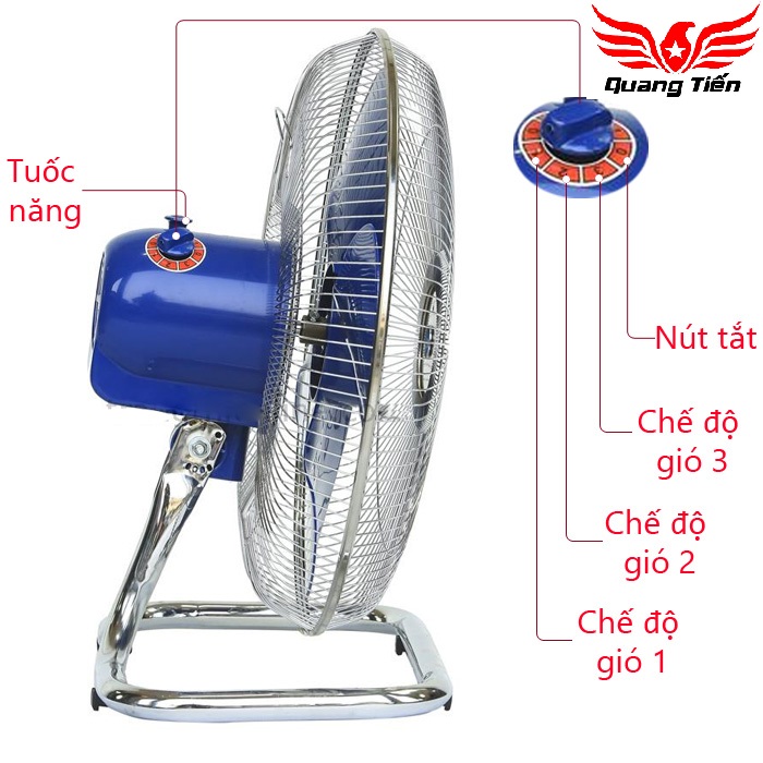 Chiếc quạt này có thiết kế để sàn, dạng chân quỳ, không cao, không chiếm nhiều không gian. Quạt chuyên dùng trong gia đình, văn phòng và làm quạt công nghiệp cho các công dân trên các chuyến hàng...
