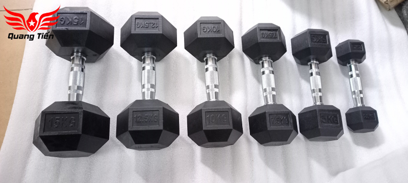 - Hình dáng : hình lục giác ở 2 đầu tạ - giúp bạn đặt để tạ tay lên xuống dễ dàng & đứng vững (không bị lăn đi như các hình dáng tròn khác)