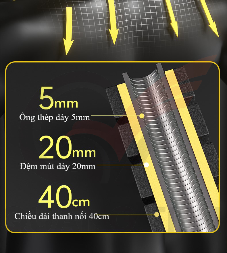 – Thanh đòn dài 40cm được bọc mút xốp tạo độ êm, chống trầy xước, tăng độ bám.