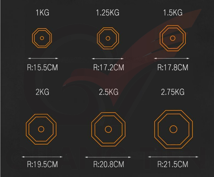 + Quả tạ:19kg ( 2KG*4, 1,5KG*4, 1,25KG*4).