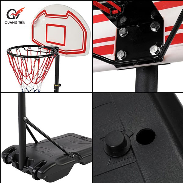 - Trụ bóng rổ chính hãng được thiết kế nhỏ gọn, có bánh xe di chuyển dễ dàng và phù hợp sử dụng để tập luyện bóng rổ tại nhà cho học sinh. Thiết kế chi tiết của trụ bóng rổ TT01 gồm: