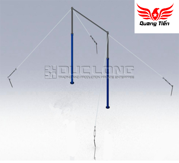 - Xà đơn sử dụng ống thép D60, D48 và sơn tĩnh điện cao cấp. Tay xà ống sắt D28 đặc dài 1,6m. Điều chỉnh được độ cao tay xà từ 2.1 đến 2.5m. Đi kèm 4 cọc chôn xuống đất và hệ thống tăng đơ căng cáp giữ cột xà.