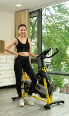 + Xe đạp thể dục sử dụng hệ thống truyền động bằng bánh đà đặc có trọng lượng lên đến 13kg kết hợp với dây curoa nên giúp đạp xe êm hơn, ít phải bảo dưỡng khi sử dụng lâu ngày. Đặc biệt, xe còn có bộ phận điều chỉnh mức độ nặng nhẹ khi đạp giúp phù hợp cho nhiều đối tượng và nhiều mục đích tập luyện khác nhau.